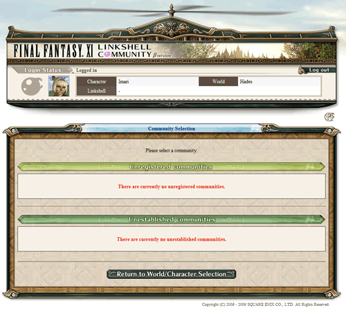 Normally if you aren't registered/established with a community, a option is given to register/establish. You will get a screen that looks like this if you are fully set up. If you do not see your linkshell listed, that means you need to get a shell/sackholder to come to the site and 'establish' the linkshell.