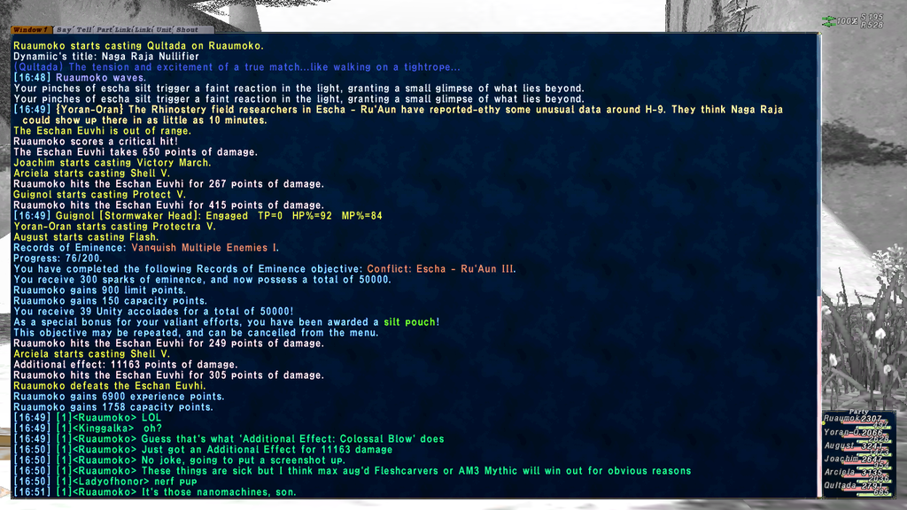 Haven't read most of the thread so not sure if this has been asked. Are people experiencing better performance on the new Kings Unity NMs with highly buffed nukers MBing or melee setups?