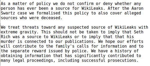 I would think that Assange would know if the staffer was the source or not. When asked specifically if he was indeed the source, Assange said that he does not reveal sources. So yeah, no proof at this point but it's interesting and yet another example of a suspicious death tied to the party of peace, tolerance, and unicorns. Wikileaks openly offered ransom to anyone who knows more about what happened to the guy. Btw Wikilicks statement about whether he was an insider: